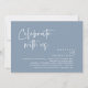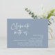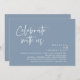 Annoncez avec élégance votre bonheur à jamais avec notre carte d'invitation de célébration de mariage d'elopement bleu et poussiéreux d'esthétique moderne, "Célébrez avec nous". Adaptée aux couples qui perpétuent leur histoire d'amour, cette invitation offre un équilibre parfait entre sophistication et charme, offrant le cadre d'un événement inoubliable. Doté d'un design contemporain moderne, il ajoute une touche de grâce intemporelle à votre journée spéciale. Conçu par le talentueux TeeshaDerrick, cette invitation est une expression élégante de votre amour durable.