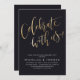 Les invitations simples et modernes disposent écrit à la main "célébrer avec nous" script en couleur or Faux sur arrière - plan noir, customisez-le avec vos détails de fête, élégant et élégant. Idéal pour la fête de fiançailles, la fête de mariage, la fête de renouveau des voeux et tous les événements de fête. Voir toutes les pièces correspondantes dans la collection.