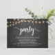 Célébrons la fête, Carte d'annonce / d'invitation de mariage et de fugue, dans un tableau de ferme rustique, conception de lumières de guirlande. C'est parfait pour votre réception de mariage et votre fête de célébration après le mariage. Ajoutez vos détails dans la même police / lettrage.