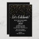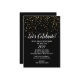 Cette invitation de fête du Nouvel An avec des confettis dorés sur fond noir est parfaite pour une célébration élégante de la Saint-Sylvestre. Le design présente des confettis dorés tendance avec une calligraphie blanche élégante sur un fond noir.