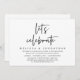 Carte d'invitation de mariage thème écriture moderne (Célébrons). Elle est parfaite pour votre dîner de mariage intime décontracté au bord du lac, la danse et la fête.