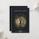 Cette annonce mystique de sauvegarde de la date présente une illustration frappante d'un Soleil et Lune serein, mais puissant, leurs visages entrelacés en harmonie. Le design est orné de complexes, fleurit à la fois dans l'imagerie et la typographie. Un style éthérée pour l'événement.