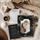 Cette faire-part de mariage céleste est incroyablement romantique et unique, dévoilant votre histoire d'amour dès le premier regard. Votre photo, peut-être une photo fiançailles, sera encadrée par une scène noire de minuit remplie d'étoiles dorées, de la lune, de planètes et d'une étoile filante. C'est comme lire une histoire enchantée juste en regardant la couverture, comme si votre amour était vraiment "Écrit dans les étoiles". C'est la plus belle invitation photo mariage, capturant l'essence magique de votre journée spéciale.