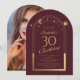 Star Red Gold Sun Moon Astronomy 30th Birthday Photo Invitations présente un élégant soleil doré, une lune et des étoiles avec un cadre doré sur un arrière - plan rose-rouge profond. A l'intérieur, vous avez vos informations d'invitation personnalisées pour le trentième anniversaire. Au verso, ajoutez votre photo préférée. Conçu pour vous par Evco Studio www.zazzle.com/store/evcostudio