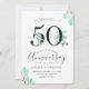 Une invitation d'anniversaire 50 ans amusante et fraîche avec des pousses d'eucalyptus à l'aquarelle entourant vos informations uniques sur le jour de l'anniversaire.