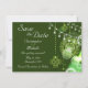 Ce faire-part enchanteur Save the Date mariage présente un magnifique design celtique avec de charmants trèfles et des lumières dans les tons vert et blanc. C'est parfait pour tout mariage et parfait pour les fêtes irlandaises et mariages de la Saint Patrick. ^