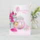 Cendrillon invitation fête d'anniversaire avec chandail de princesse en diamant rose et argent et arrière - plan de château avec adorable petite fille blonde portant une jolie robe rose avec tiare en diamant et perles. Ces belles filles n'importe quel nombre Cinderella rose et argent une fois sur une invitation de fête d'anniversaire de princesse temps est facilement customisé pour votre événement en ajoutant simplement vos détails dans le style et la couleur de police, et le libellé de votre choix. Il s'agit d'un dessin imprimé sans parties scintillant réelle, diamants, perles, etc.