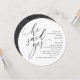 Cette invitation de fiançailles comporte l'expression "Il a dit oui" dans un script manuscrit noir moderne avec un arrière - plan d'aquarelle noir sur le dos.