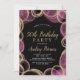 Elégante Parties scintillant moderne rose et or Cercles d'encre Black 50th Birthday Invitation. Cette femme fille adulte Cinquante/Cinquantième (ou tout âge) invitation fête d'anniversaire comporte un élégant script de calligraphie écrit à la main et un cadre rose et Gold Alcohol Enk Circles sur arrière - plan noir. Idéal pour une fête d'anniversaire féminine pour adultes, cette invitation saisit parfaitement l'essence d'une fête d'anniversaire moderne en or et en parties scintillant rose.
