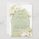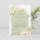 Les invitations de baptême ou de christening de style tropical chic dans une palette de couleurs neutres séduisante présentent un élément central en forme d'arche portant les détails de votre cérémonie d'église et de votre célébration ou fête, accentués de frondes de palmier à l'aquarelle vert pâle, de feuillage insulaire de plage, d'orchidées blanches, de botaniques séchées bohèmes et d'herbe de pampa.