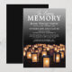 Invitation à un service funèbre commémoratif avec des lanternes allumées et un modèle de célébration de la vie facile à personnaliser.