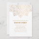 Invitation à la cérémonie de la première bouchée de riz Annaprashan Gold White Mandala. Cette invitation au mukhe bhaat bengali présente un mandala doré complexe sur fond blanc. Parfait pour tout bébé hindou. Personnalisez ce design personnalisé avec vos propres détails et photo.