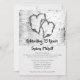 Invitation à la cérémonie du mariage avec des coeurs sculptés dans un bouleau. Rustique, renouvelant la carte de voeux avec trois modèles de texte dans les tons noir et gris neutre. Lettres audacieuses pour les années de mariage et de noms, avec toutes les autres informations imprimées ci-dessous. L'image réaliste de l'écorce de bouleau blanc est également imprimée sur le dos. Effectuez une mise à niveau en choisissant un papier spécialisé.