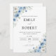 Invitation à la cérémonie de Mariage en ivoire bleu Dusty. Cette invitation à la douche de mariage élégante et élégante présente de magnifiques aquarelles peintes à la main, la soie florale. Trouvez les articles correspondants dans la collection florale d'ivoire bleu Dusty.