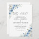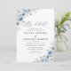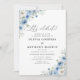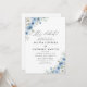 Invitation à la cérémonie de Mariage en ivoire bleu Dusty. Cette invitation à la douche de mariage élégante et élégante présente de magnifiques aquarelles peintes à la main de la couleur bleu outrepasse. Trouvez les articles correspondants dans la collection florale d'ivoire bleu Dusty.