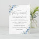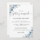Invitation à la cérémonie de Mariage en ivoire bleu Dusty. Cette invitation à la douche de mariage élégante et élégante présente de magnifiques aquarelles peintes à la main de la couleur bleu outrepasse. Trouvez les articles correspondants dans la collection florale d'ivoire bleu Dusty.