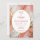 Célébrez votre amour avec style avec cette invitation de cérémonie d'engagement Corail pêche et or exquise. Conçue pour évoquer la chaleur et l'élégance, le fond présente des coups de pinceau expressifs en corail pêche et crème, rehaussés de formes délicates de feuilles de faux or pour un toucher de luxe. Le texte central est mis en valeur dans un contour ovale blanc doux, élégamment bordé de feuille de faux or - créant un point focal sophistiqué qui se sent à la fois intemporel et moderne.