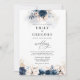 Invitation à la cérémonie des Mariages Roses bleu et Dusty de la Marine. Cette invitation à la douche de mariage élégante et élégante présente de magnifiques aquarelles peintes à la main Marine bleu et Dusty Rose Floral. Trouvez les articles correspondants dans la collection florale Rose bleu marine et Dusty.
