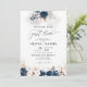 Invitation à la cérémonie des Mariages Roses bleu et Dusty de la Marine. Cette invitation à la douche de mariage élégante et élégante présente de magnifiques aquarelles peintes à la main Marine bleu et Dusty Rose Floral. Trouvez les articles correspondants dans la collection florale Rose bleu marine et Dusty.