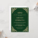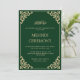 C'est une invitation de mariage musulmane islamique élégante et propre de couleur vert émeraude pour la cérémonie de henna Mehndi du couple heureux. Il y a une police de caractères cursive dorée formelle avec une décoration de feuille baroque antique dans le coin. Vintage. Délicat. Romantique. Vous pouvez personnaliser ce modèle imprimable à l'aide de l'outil de conception sur le côté droit. Vous pouvez modifier les noms du couple, le style et la taille de la police. Le texte est écrit en lettres majuscules. Célébrez votre jour spécial en envoyant cette invitation ou partagez-la en téléchargement instantané. Papeterie de mariage d'élégance intemporelle. Une enveloppe blanche est incluse pour vous.