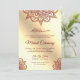 Étonnez vos invités avec cette invitation traditionnelle de Mehndi présentant une élégante œuvre d'art au henné et 'Bismillah' en calligraphie arabe sur un fond de feuille d'or faux. Ajoutez simplement les détails de votre événement sur ce modèle facile à utiliser pour en faire une invitation unique. Retournez la carte pour révéler une œuvre d'art traditionnelle au henné au verso de la carte.