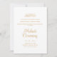 Elégant Musulman Musulman Mehndi Cérémonie de henné Invitation pour votre journée spéciale pour célébrer vos noces. Arrière - plan simple et formel en ivoire blanc avec luxe, flemisk minimal et des polices de caractères gras goudy en or. Il y a une calligraphie arabe traditionnelle à l'ombre dorée. La couleur de cette carte d'invitation peut être customisée et toutes les informations comme les noms de la mariée et du marié, la date et l'adresse de l'événement sont modifiables. Imprimable. Moderne. Enveloppe vide incluse.
