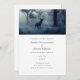 Faire-part de mariage avec la photo d'un cerf royal aux bois de bois debout dans une forêt sombre. Neige tombant tout autour.