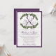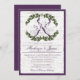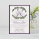 Un chevreuil à l'apparence esquissée dans une couronne de feuillage avec coeur et monogramme de faire-part de mariage dans le violet de prune. Inspirations rustiques de bouleau et de burlap pour votre événement mariage de bois ou de grange.