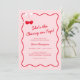 Célébrez l'amour avec cette invitation personnalisée Red Bow Cherry On Top Bridal Shower, parfait pour un thème de la douche nuptiale cerise. En mettant en évidence "elle est la cerise sur le dessus", ce design s'associe magnifiquement avec une cerise sur la douche nuptiale supérieure. Idéal pour les idées de douches nuptiales de Valentines ou un thème de douches nuptiales de Valentines, il complète également un élégant thème de douche nuptiale avant.