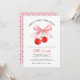 Cherry Bow Tying the Knot Bridal Shower Invitation - Célébrez le moment le plus doux de l'amour avec notre cerry Bow Tying the Knot Bridal Shower Invitation. Ce design enchanteur présente des cerises rouges vibrantes jouement liées avec un arc de coquette rose charmant, symbolisant l'union de deux coeurs. La typographie de script gracieuse encadre élégamment les détails de la journée spéciale, en ajoutant une touche de sophistication à la fantaisie. Le revers est orné d'une cascade de cerises, créant un cadre joyeux et cohésif à l'invitation. Parfaitement adaptée à une collection de Fêtes des mariées, cette invitation donne le ton d'une célébration aussi douce, vibrante et charmante que l'amour lui-même.