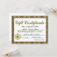 Invitation Certificat Cadeau en Or Personnalisé pour les Invi