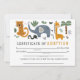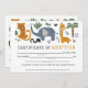 Certificat d'adoption d'animal Deux enfants de Safari sauvage Fête d'anniversaire avec des caractéristiques fantaisistes girafe, éléphant, lion, zèbre, léopard, singe, serpent, crocodile, animaux sauvages mignons et colorés avec le texte en script typographique moderne noir et moutarde. Parfait pour les garçons ou les filles, les célébrations d'anniversaire des deux ans des enfants. Conçu par Evco Studio. Pour les articles de coordination, voir www.zazzle.com/store/evcostudio