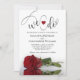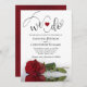 Cette belle faire-part de mariage est romantique, ludique et élégante. Il est doté d'un titre amusant avec un coeur rouge et un script moderne qui indique "We do" en haut, avec tous les détails ci-dessous. Au fond se trouve une magnifique rose rouge pourpre à long tige allongée sur son côté, réfléchissant dans un bassin d'eau. Classé, élégant et sophistiqué, cette invitation est la meilleure façon d'invitation vos amis et votre famille pour partager votre joie dans votre journée spéciale!