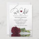 Cette belle faire-part de mariage est romantique, ludique et élégante. Il est doté d'un titre amusant avec un coeur mignon et un script moderne qui indique "We do" en haut, avec tous les détails ci-dessous. Au fond se trouve un magnifique rose bordeaux, marron ou rouge vif à long tige, allongé sur son côté, réfléchissant ou reflété dans un bassin d'eau. Le dos est d'une couleur bordeaux foncé avec un bouquet de roses attachés avec un arc en satin blanc. Il y a un titre "les détails" avec la place pour une note courte et un code QR personnalisable pour diriger vos invités vers un site Web avec plus d'informations et/ou vers RSVP en ligne. Classé, élégant et sophistiqué, cette invitation est la meilleure façon d'invitation vos amis et votre famille pour partager votre joie dans votre journée spéciale!