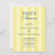 Une invitation de mariage moderne mais intemporelle présentant des rayures jaune clair et jaune beurre qui évoquent la chaleur et la sophistication. Le design est rehaussé par une typographie bleue, trouvant un équilibre parfait entre la clarté minimaliste et l'élégance à l'italienne. Au cœur de l'invitation, la phrase « That's Amore » apparaît à la fois dans un script moderne et une calligraphie vintage, symbolisant l'union de la romance contemporaine avec la tradition classique. Ce style double reflète l'essence de la romance italienne, où la passion rencontre l'héritage. L'esthétique globale murmure l'élégance de l'argent de famille - raffinée, discrète et d'un chic sans effort. La palette rayée rappelle les villas italiennes ensoleillées, tandis que la typographie ajoute une touche de charme aristocratique. Ensemble, ces éléments créent une invitation minimaliste mais luxueuse, romantique