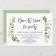 Carte d'invitation de mariage en elopement sur le thème de la verdure estivale avec écriture noire moderne (C'est maintenant temps de faire la fête). Elle est parfaite pour votre réception de mariage en elopement / fête de célébration après le mariage. Ajoutez vos détails dans la même police / lettrage noir.