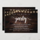 C'est maintenant temps de faire la fête, Carte d'annonce / invitation de mariage intime, sur fond de bois rustique de ferme, avec guirlande lumineuse. C'est parfait pour votre réception de mariage et fête de célébration après-mariage. Ajoutez vos détails avec la même police / lettrage.