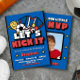 Débutez les festivités avec cette invitation d'anniversaire sur le thème du football ! Parfaite pour la célébration du 1er anniversaire de votre petit bout, ce design ludique présente un ballon de football, un maillot, un trophée et des lettres de style BD en gras qui disent « Let's Kick It ». Cette invitation est idéale pour les fans de football, les enfants qui aiment le sport et les fêtes d'anniversaire énergiques. Personnalisez le nom, la date, l'heure et le lieu pour le rendre unique. ⚽ Idéal pour : Fêtes d'anniversaire pour tout-petits et enfants Célébrations sur le thème du football ou du sport Apportez l'excitation du jeu au grand jour de votre enfant avec cette invitation amusante et vibrante !
