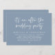 Marquez le début de votre éternité avec élégance en utilisant notre carte d'invitation à la célébration d'élévation mariage bleu poussiéreux contemporaine, "C'est un après la fête de mariage". Parfait pour les couples qui souhaitent profiter de leur joyeux événement, cette invitation exhale le raffinement avec un soupçon de jeu, préparant le terrain pour un événement mémorable. Décoré avec un thème design contemporain intemporel, il ajoute une touche de charme raffiné à vos festivités. Conçu par TeeshaDerrick, cette invitation promet de capturer magnifiquement votre histoire d'amour.