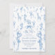 Bienvenue à notre enchanteur Baby shower animal Safari Toile bleu Modèle d'invitation! Célébrez l'arrivée imminente de votre animal sauvage avec cet adorable et éditable modèle avec une nature de jungle et animal de bébé safari mignon - lion, éléphant, girafe en français style toile de jouy