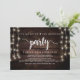 C'est après le dîner de mariage et la fête, carte d'annonce / invitation de mariage en fuite, dans un design de bois de ferme rustique, de lumières de corde. C'est parfait pour votre réception de mariage et votre fête de célébration post-mariage. Ajoutez vos détails dans la police / lettrage correspondant.