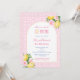 Cet invitation moderne de fête de premier anniversaire pour une petite fille est basé sur un jeu de mots - "doux". Le design se compose d'une arche populaire et de fruits d'agrumes, avec des reflets floraux roses contre un imprimé arrière - plan rose et blanc fait d'un carrelage vintage.
