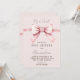 Célébrez la future maman avec cette invitation personnalisée Baby shower Bow rose, l'ajout parfait à un Baby shower rose vif élégant. Doté d'un arc d'aquarelle rose poussiéreux contre un arrière - plan rose doux, ce design élégant combine police de script moderne et calligraphie dans une tonalité mocha chic pour une touche sophistiquée. Idéal pour ajouter une touche de plaisir et de charme, cet Invitation ajoute un accent gracieux et féminin à votre célébration du Baby shower à thème Coquette.