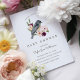 Belle invitation de douche bohème avec des fleurs aquarelles et de la verdure et un petit oiseau. Notre design présente nos fleurs aquarelles peintes à la main et un oiseau aquarelle mignon avec une feuille de brindille dans son bec. Le verso présente notre motif floral aquarelle dessiné à la main qui complète magnifiquement l'illustration de la face avant. Toutes les illustrations sont des œuvres originales dessinées à la main par Moodthology.
