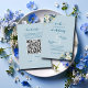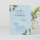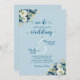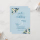 Une élégante invitation de mariage avec des fleurs de parties scintillant bleu doré poussiéreux et une calligraphie élégante que vous pouvez customiser avec vos détails.