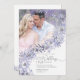 Cette élégante invitation à l'anniversaire de mariage comporte une photo personnalisée encadrée de lavande d'aquarelle douce et de fleurs lilas, évoquant un charme vintage romantique. Le design mêle magnifiquement feuilles pastel violet et fleurs avec une typographie gracieuse, ce qui le rend parfait pour célébrer un 10ème anniversaire de mariage ou toute étape de l'amour. La section photo personnalisable ajoute une touche personnelle, tandis que la couronne fleurie dans les tons doux lavande donne un charme rêveur et intemporel aux couples qui adorent l'élégance florale romantique.