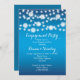 Chaîne de lumières et flocons de neige blancs invitation à la fête de mariage d'hiver bleu avec un cordon de lumières brillant de scintillants blancs avec des flocons de neige sur le dessus sur l'arrière - plan dégradé bleu. Ce design mariage moderne et tendance fait partie d'un ensemble ou d'une collection de mariages, est entièrement personnalisable et est parfait pour un mariage de Noël d'hiver. Certains éléments sont offerts par vectorportal.com.