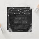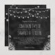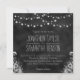 Chaîne de lumière Chalkboard © Sunny Mars Designs. Élégant, moderne, élégant, élégant, élégant, tendance, chic personnalisable formel ou mignon invitations de mariage décontracté 5,25" x 5,25" avec un beau design noir en tableau noir avec des ampoules de corde ou de lampes à cordes accrochées au-dessus avec un design tropical floral ci-dessous.