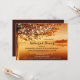 Une invitation romantique à un dîner de répétition avec une peinture d'un arbre d'automne avec des lampes à cordes au bord de l'eau. Parfait pour une fête sur un lac ou une rivière ou tout autre dîner à l'automne.