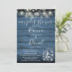 Une invitation wedding shower rustique en couple avec de jolies lampes à cordes et des jarres en maçon avec typographie stylée, sur un arrière - plan en bois rustique bleu. Conçu par Thisisnotme©